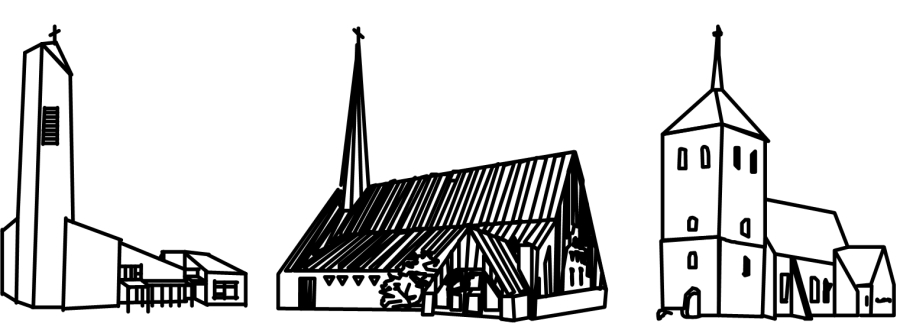 Bild zeigt die Christuskirche, di Kirche St. Martin und die Kirche Rensefeld als Bleistiftzeichnung.