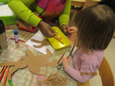 Weiter ging es nach Frankreich, die größeren Kinder zeichneten den Eifelturm und die jüngeren bereiten frische Croissants zu, ein Kind hatte noch die Idee Boules zu spielen.