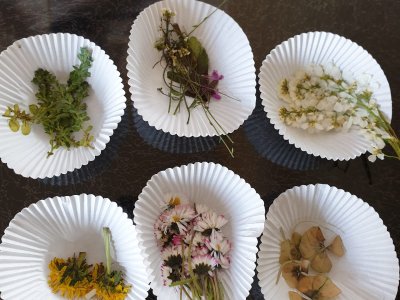 Ihr könnt bei einem Spaziergang ein paar schöne grüne oder blühende Pflanzen suchen.