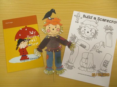 Unsere Fensterscheiben zieren nun Gummistiefel und wir haben lustige Regenschirmbilder gestaltet. Auch das Eichhörnchen „Fluppi“ hat uns besucht und wir haben Nüsse und Kastanien für es gesammelt und natürlich eine Menge gelernt, auch über den Igel. Janet hat Scarecrows (Vogelscheuchen) mit den Kindern gebastelt und einen Bewegungsreim eingeübt. Außerdem haben wir Erntedank-Gottesdienst bei bestem Wetter draußen gefeiert und uns mit dem Thema Dankbarkeit beschäftigt.