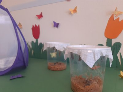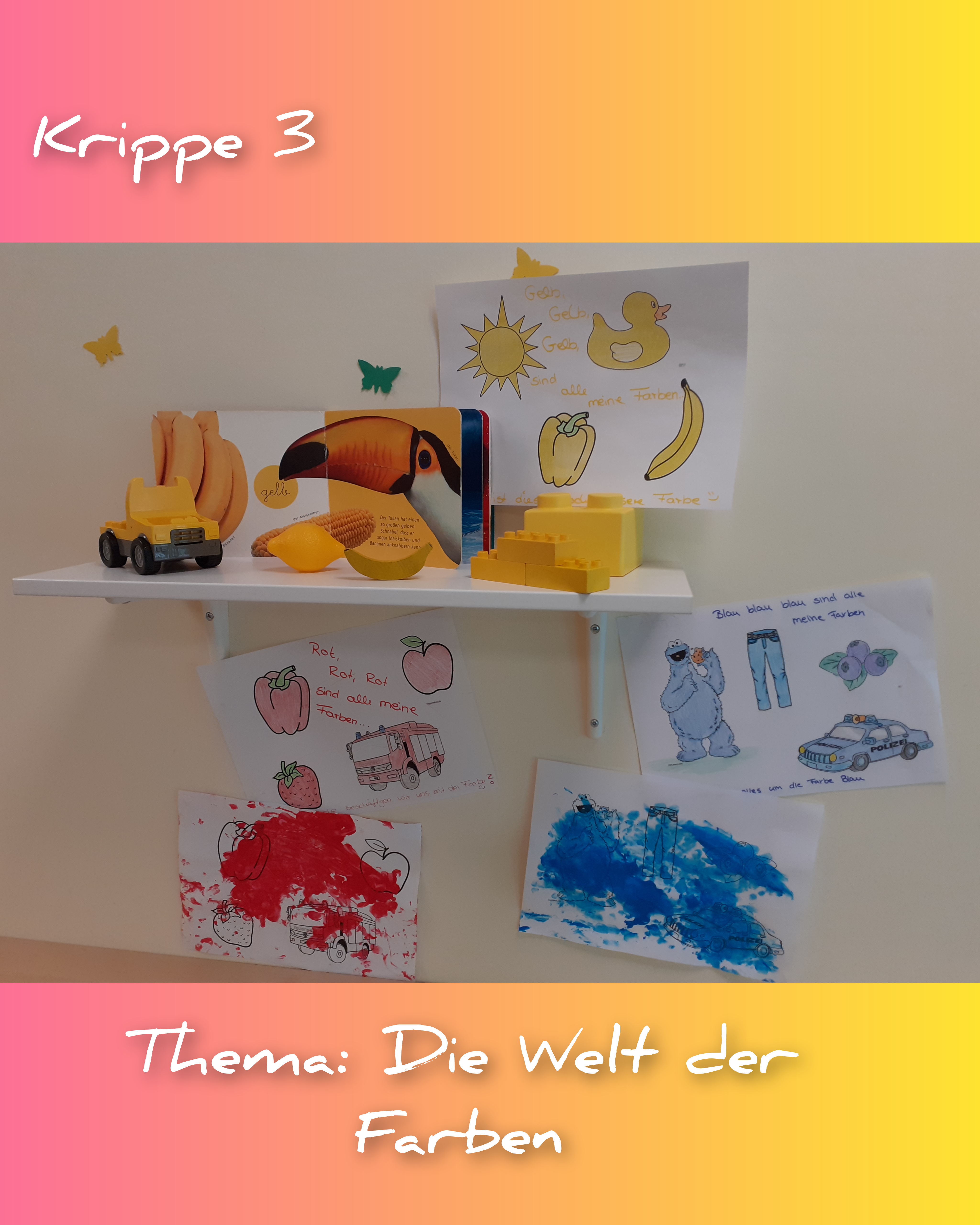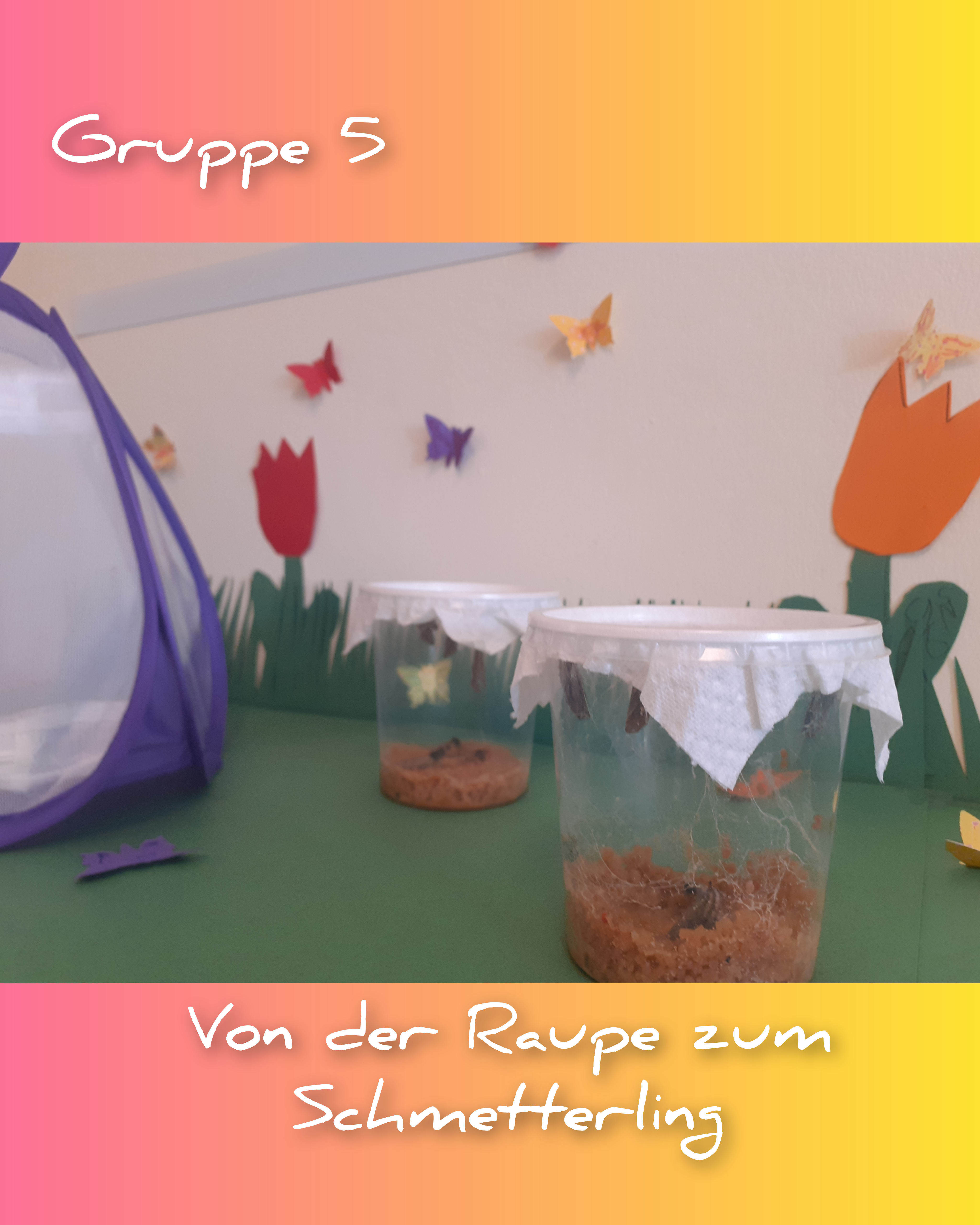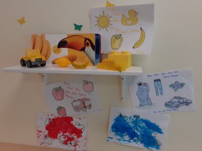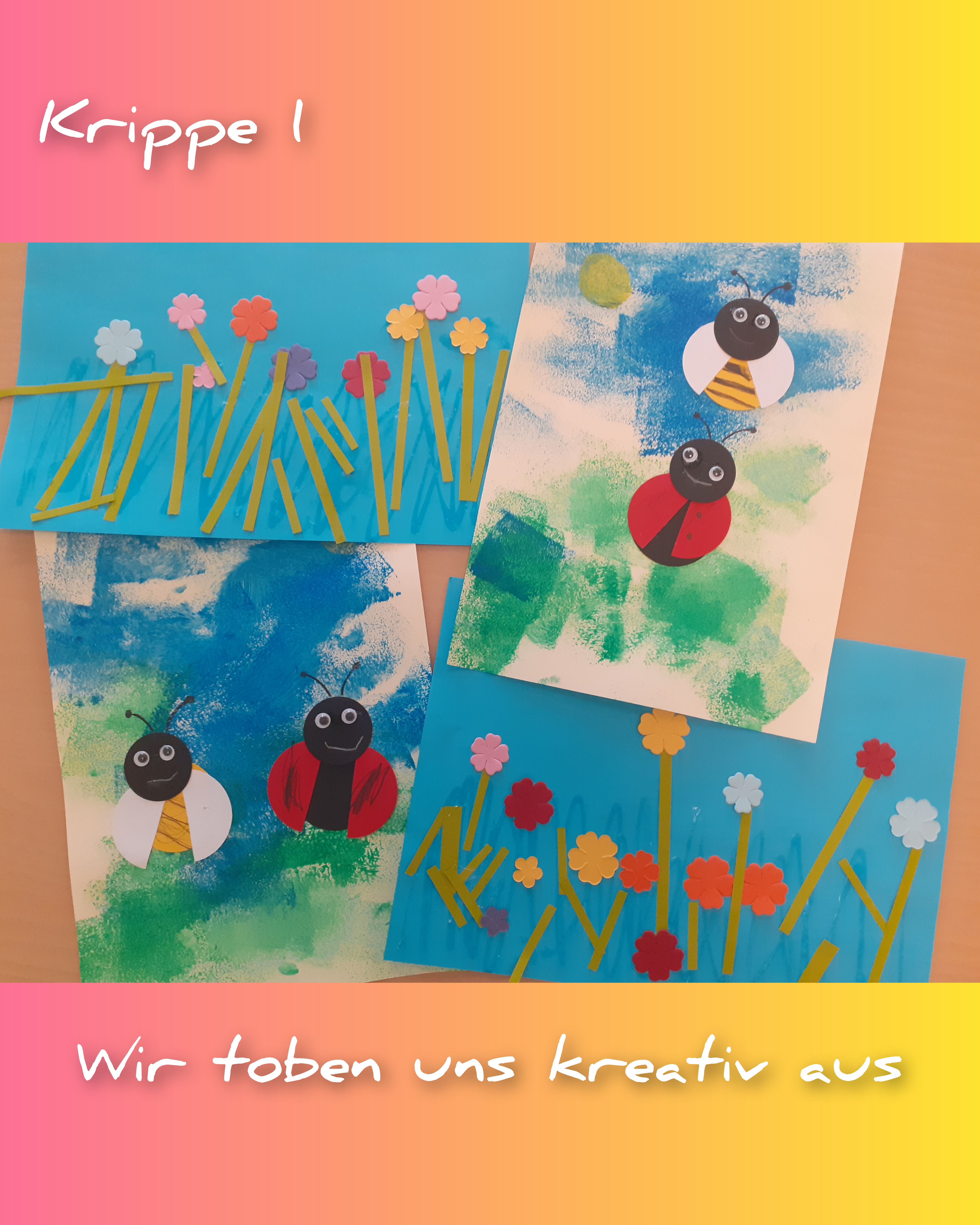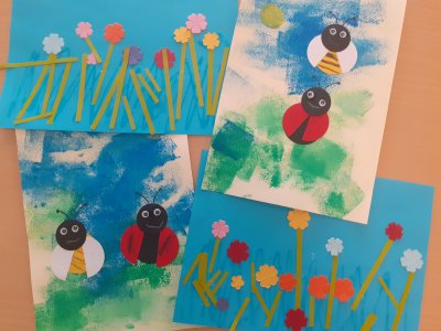 Aber auch Vögel, Blumen und Schmetterlinge verschönern nun den Gruppenraum. Die Hunde - Kinder hatten großen Spaß, eigene Blumenbilder aus Klopapierrollen zu gestalten.