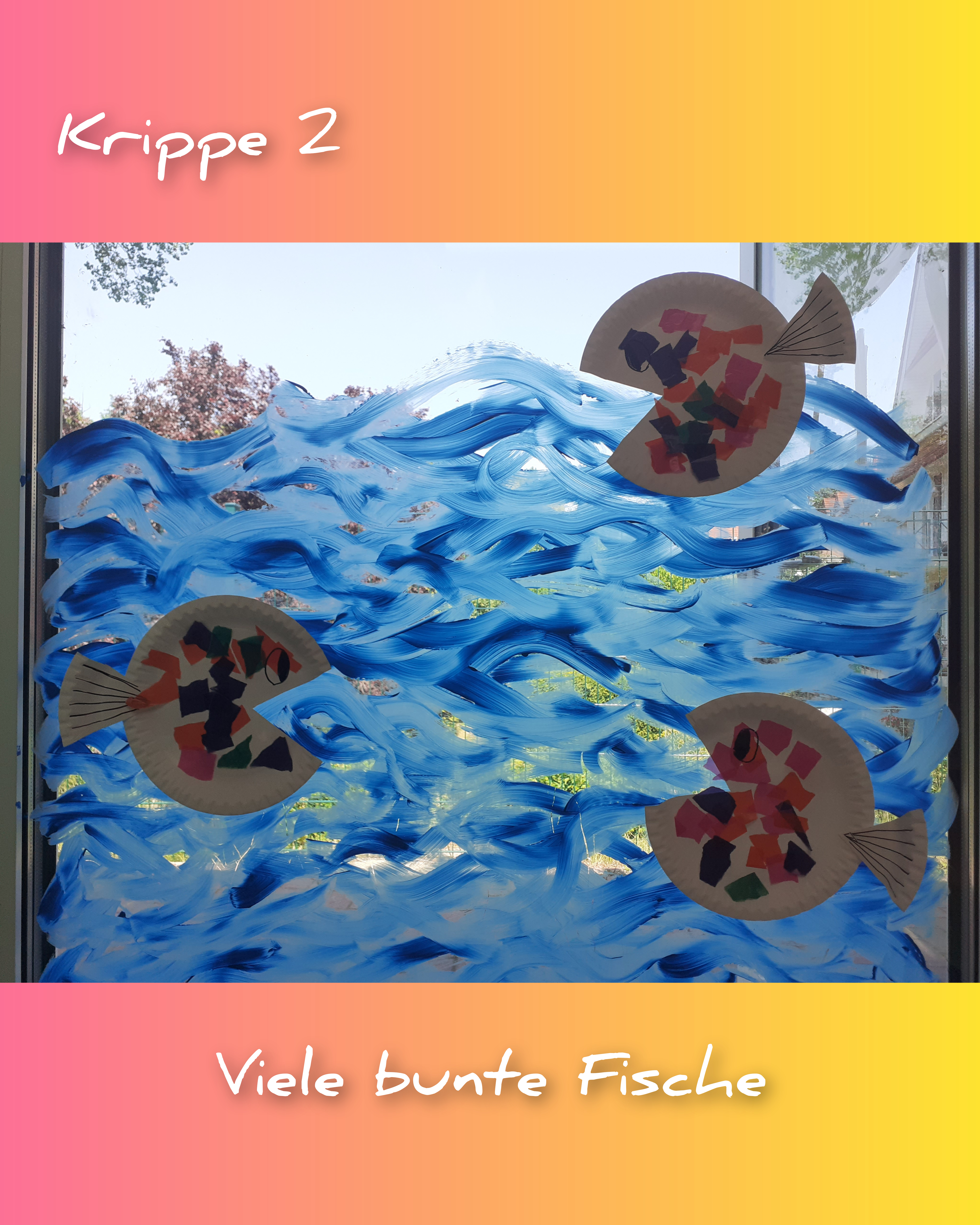 Weitere kleine Kunstwerke waren aus Eisstielen geklebte Rahmen, die die Kinder nach ihren Ideen verzieren konnten und noch ein Bild dafür gemalt haben, welches hinter den Rahmen geklebt wurde.