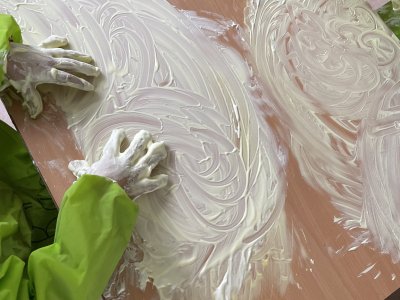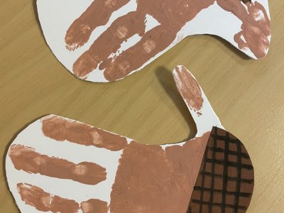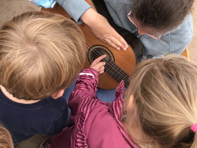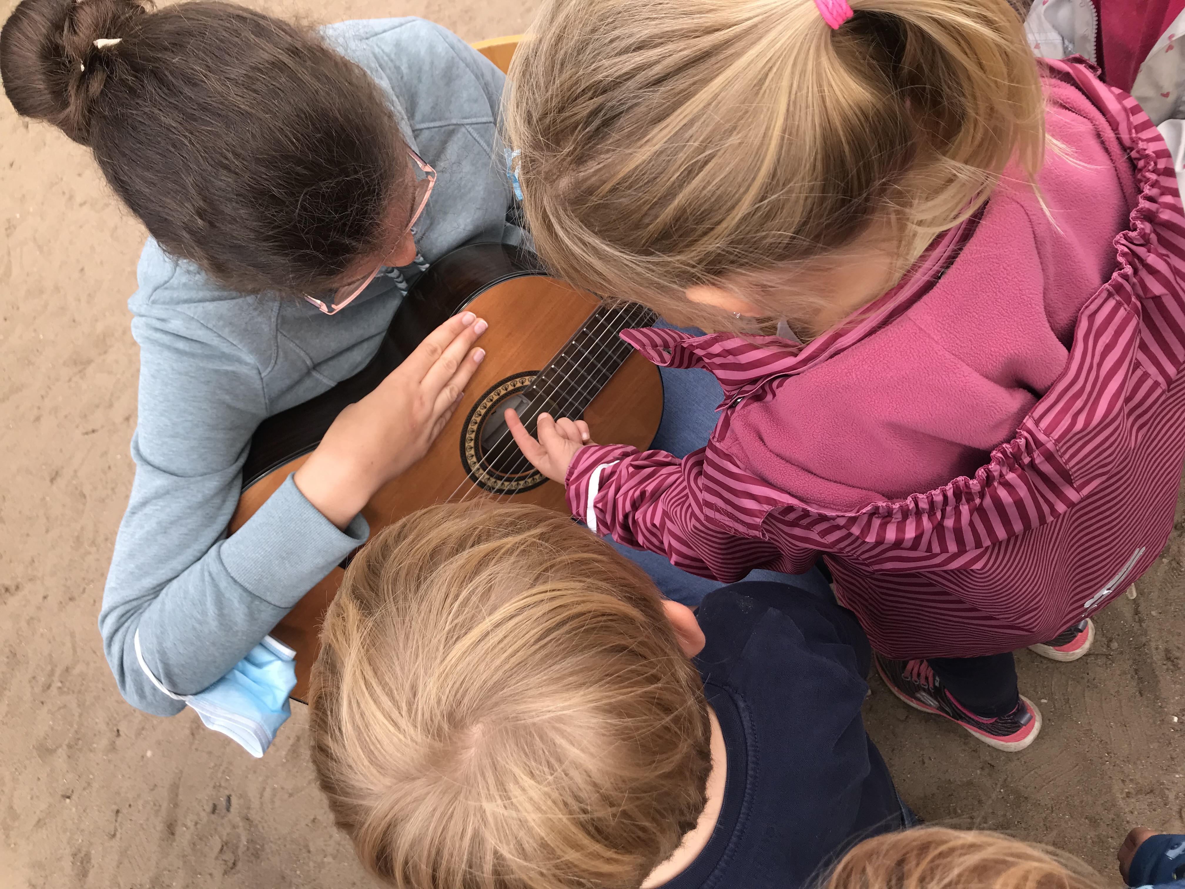 Die Kinder bastelten mit unterschiedlichen Techniken die verschiedenen Tiere und die Handschuhe. Außerdem interpretierten sie das Buch als Mitmachlied und als Klanggeschichte. Beim Turnen liefen alle „Tiere“ durcheinander und versuchten den begehrten Platz im „Handschuh“ zu ergattern. Während des Freispiels lagen für die Kinder Lernspiele bereit.