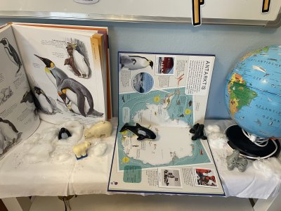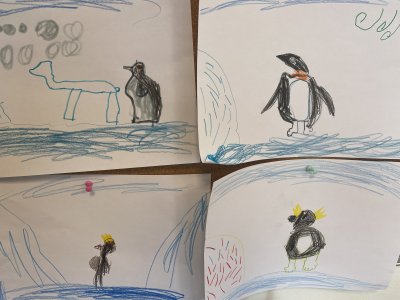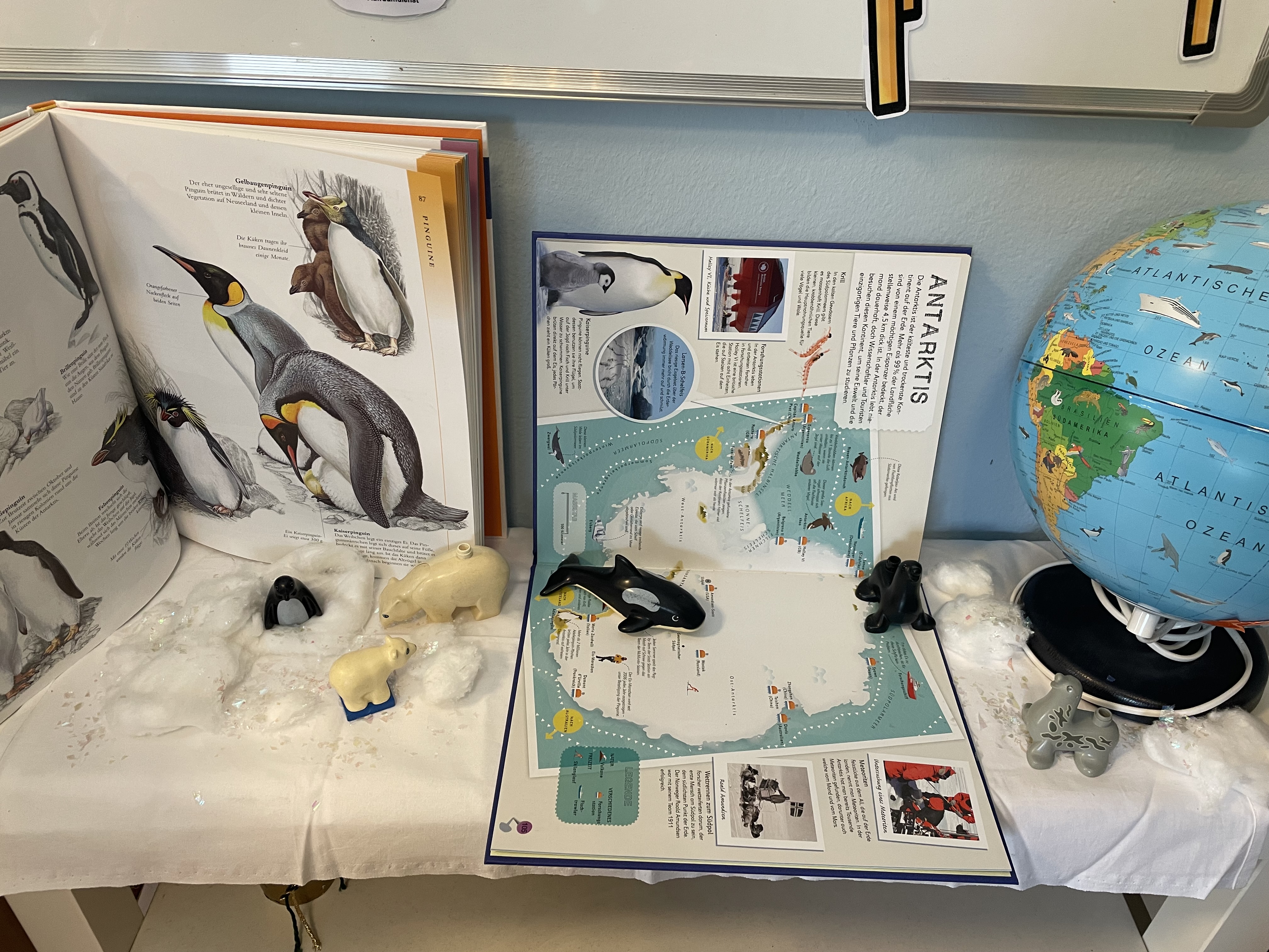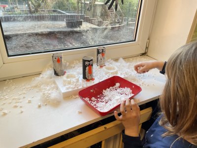 Wir haben vieles gelernt, zum Beispiel wo die Pinguine leben, was sie gerne fressen, warum sie einen weißen Federbauch und schwarzen Federrücken haben.