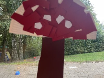 Auf unserer letzten Entdeckungsreise durch den Wald hörten die Tigerkinder schon von weitem ein lautes Geräusch. Neugierig machten wir uns auf die Suche... und trafen auf fleißige Waldarbeiter, die viele Bäume in einzelne Abschnitte zersägten. Wir bekamen die Erlaubnis, dass sich jedes Kind ein Stück vom Baumstamm mitnehmen durfte.Unsere Idee war es, Waldwichtel zu gestalten. Alle hielten durch und transportierten ihr ausgewähltes Stück Holz bis zur Kita. Dort bereiteten wir einen großen Tisch mit vielen verschiedenen Materialien vor und dann ging es an die Arbeit. Mit viel Elan und Phantasie entstanden einzigartige Kunstwerke!