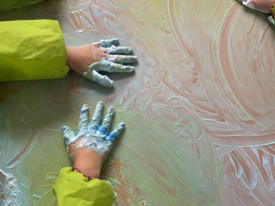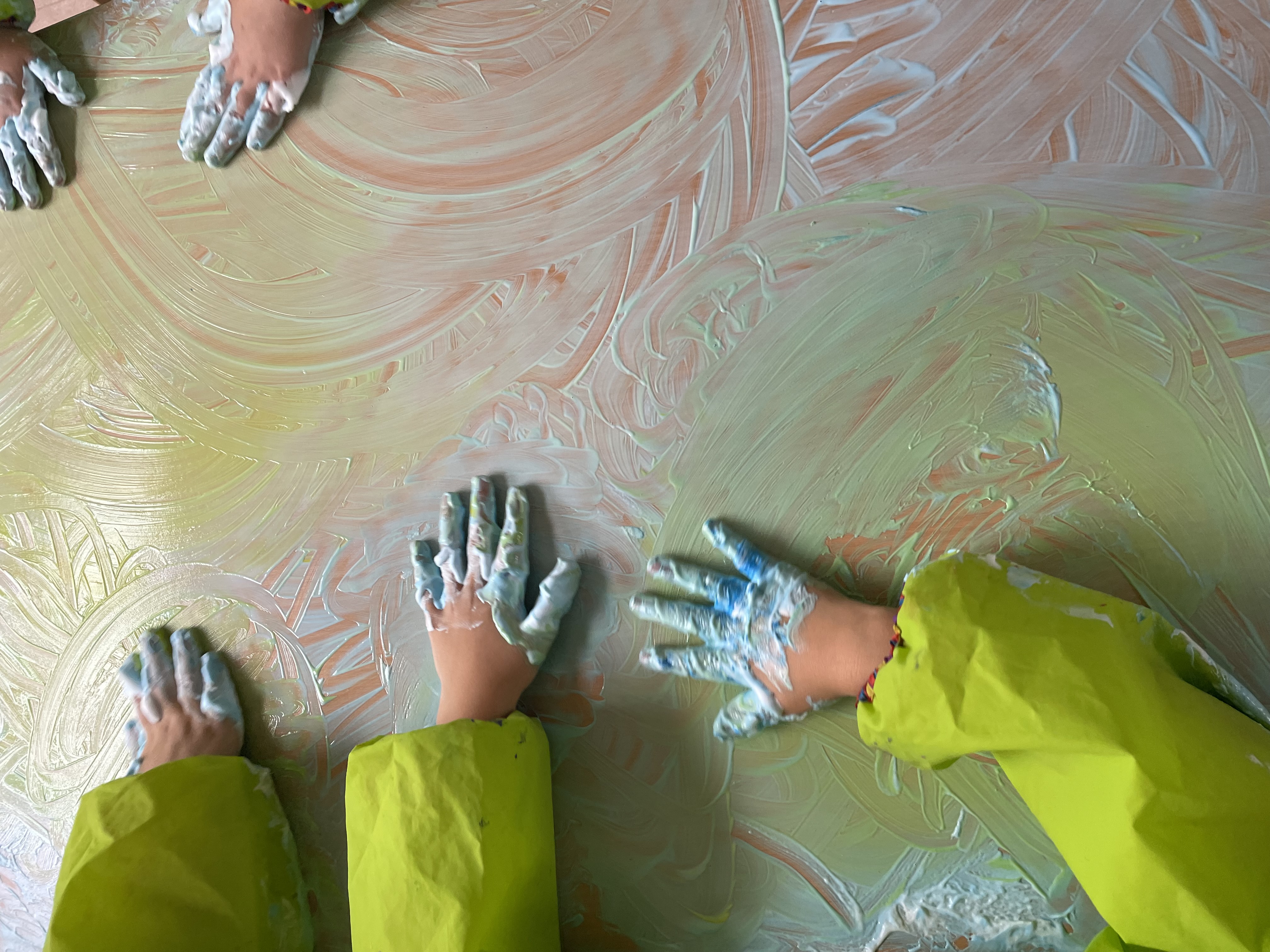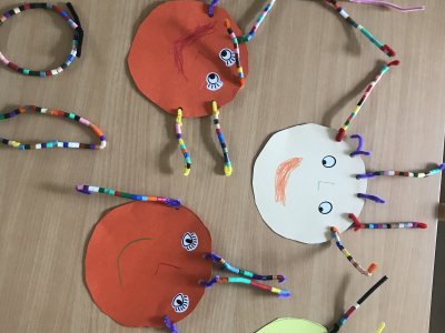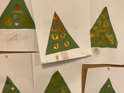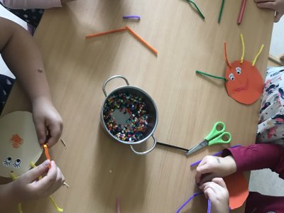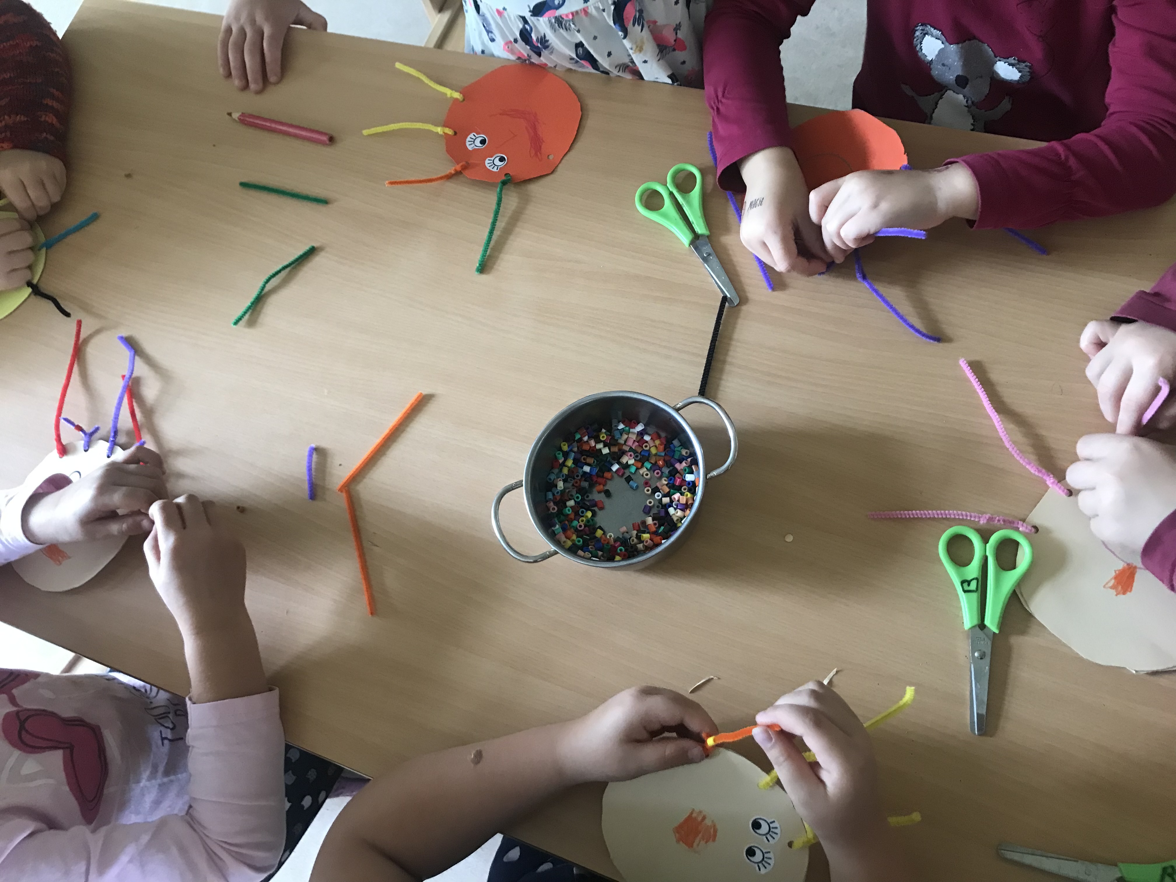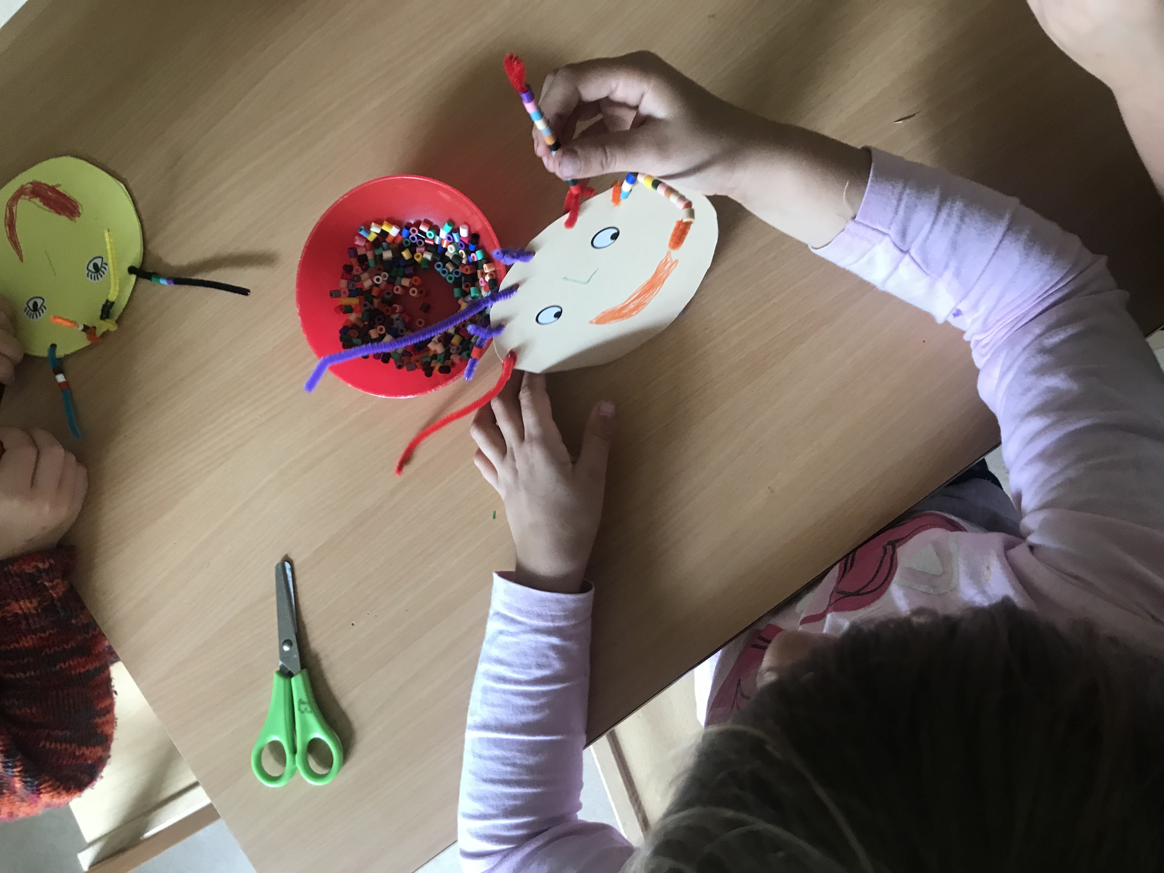 Gemeinsam mit den Kindern schmücken wir den Gruppenraum mit gebastelten Kunstwerken.