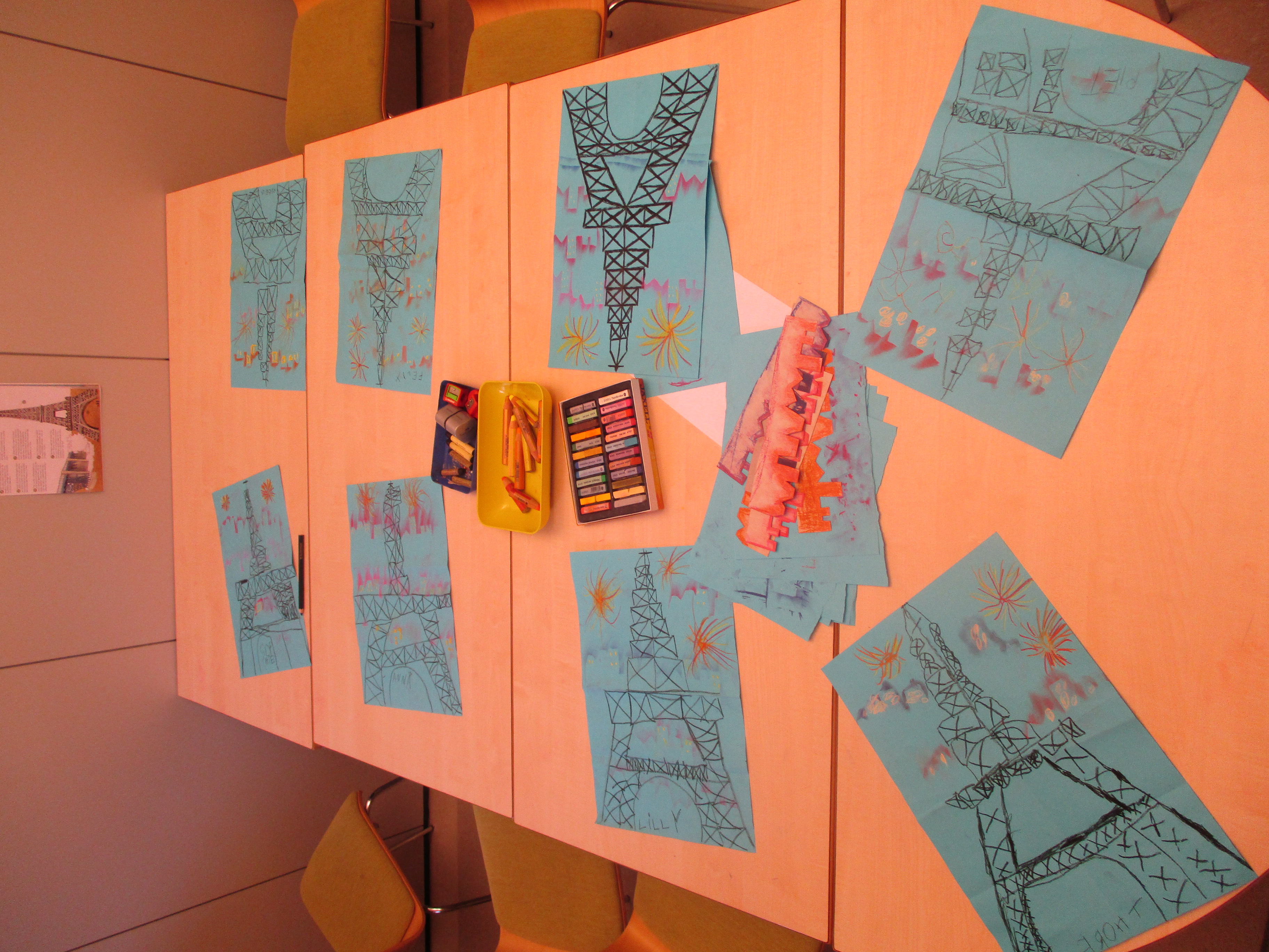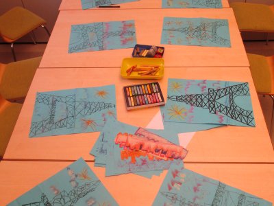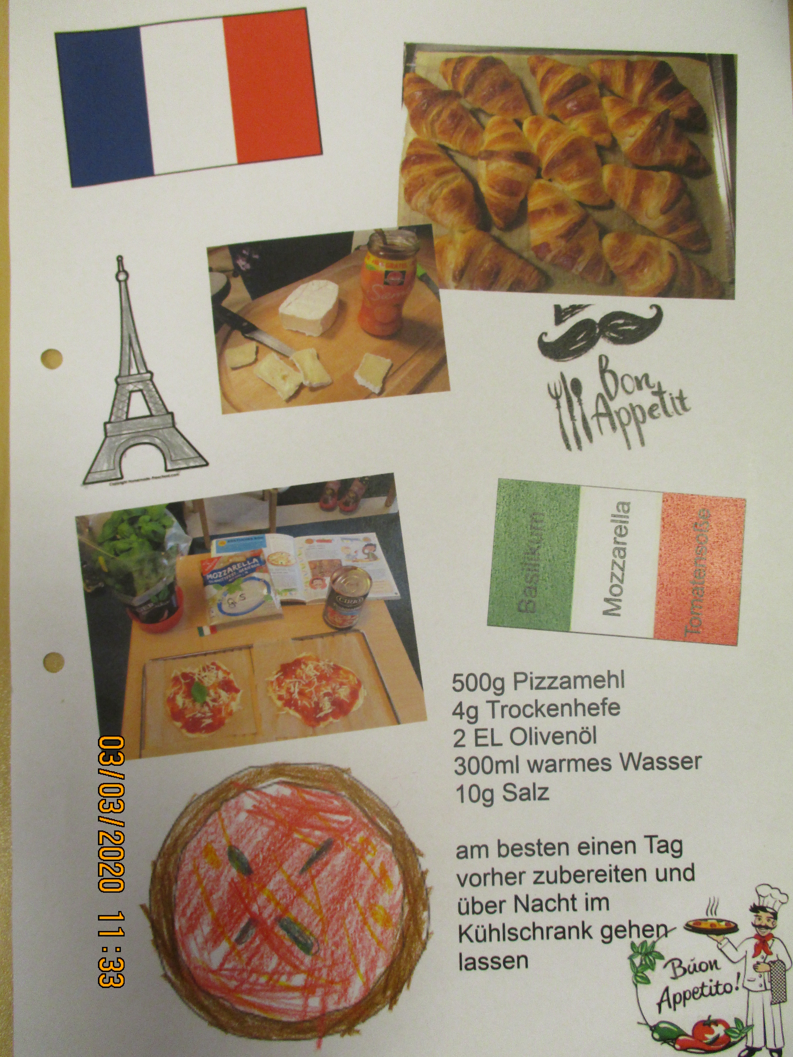 Weiter ging es nach Frankreich, die größeren Kinder zeichneten den Eifelturm und die jüngeren bereiten frische Croissants zu, ein Kind hatte noch die Idee Boules zu spielen.