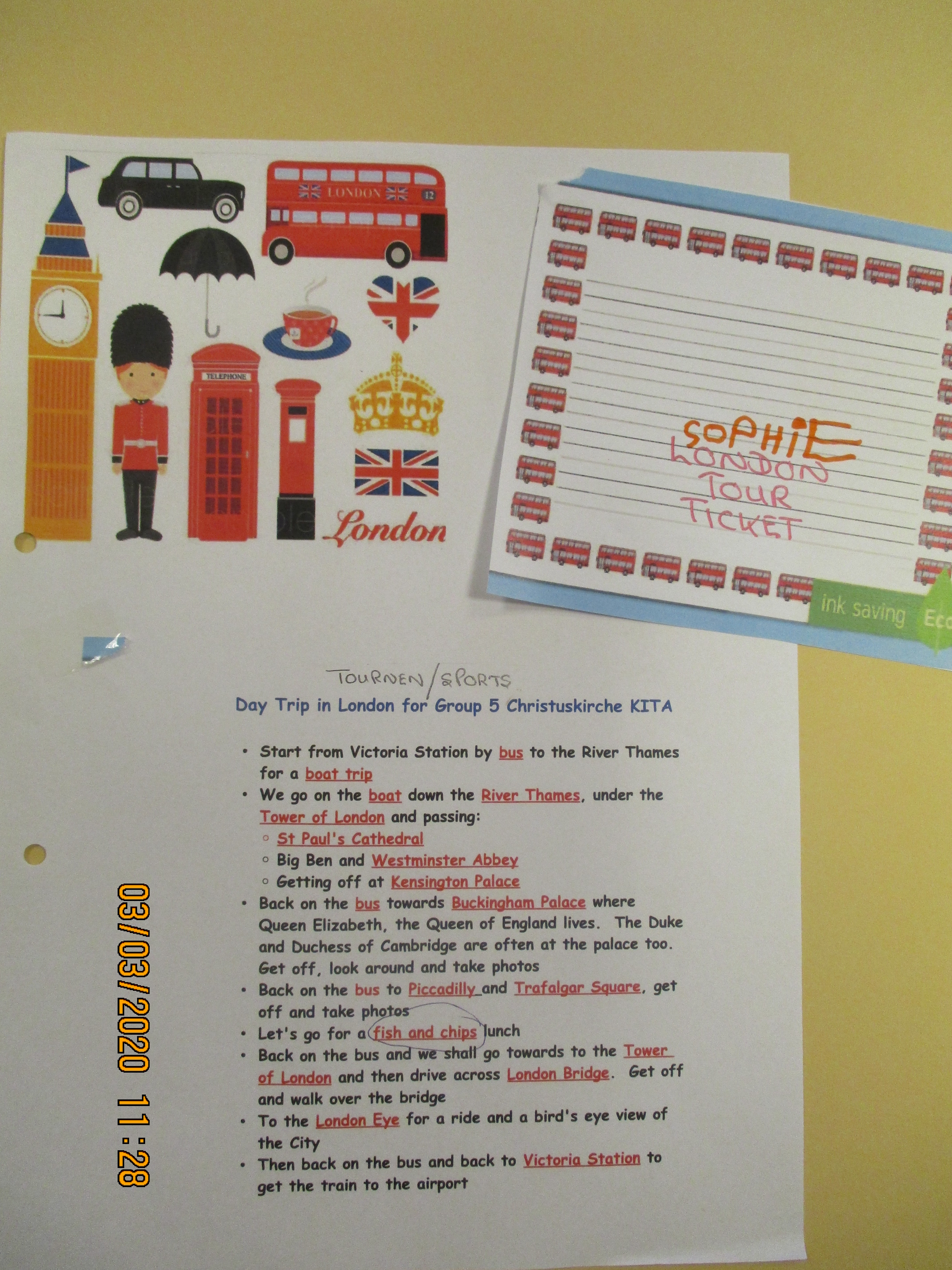 Gemeinsam mit Hase Felix machte sich Gruppe 5 auf Reisen. Erster Stop war London, hier erlebten wir in der Turnstunde eine Stadtrundfahrt und Janet backte englische Pancakes (traditionell serviert mit Zitrone und Zucker).